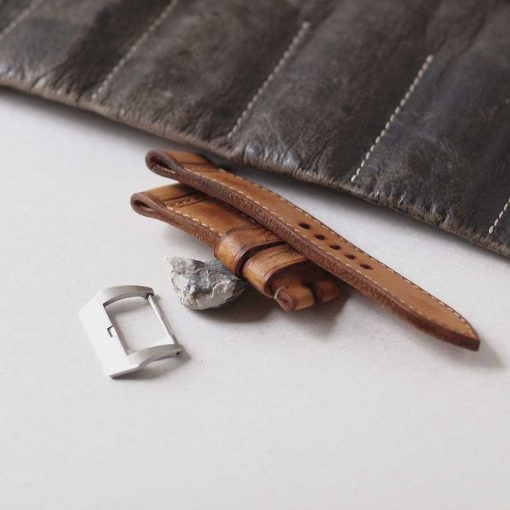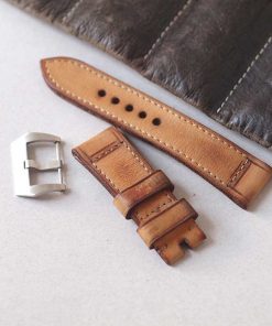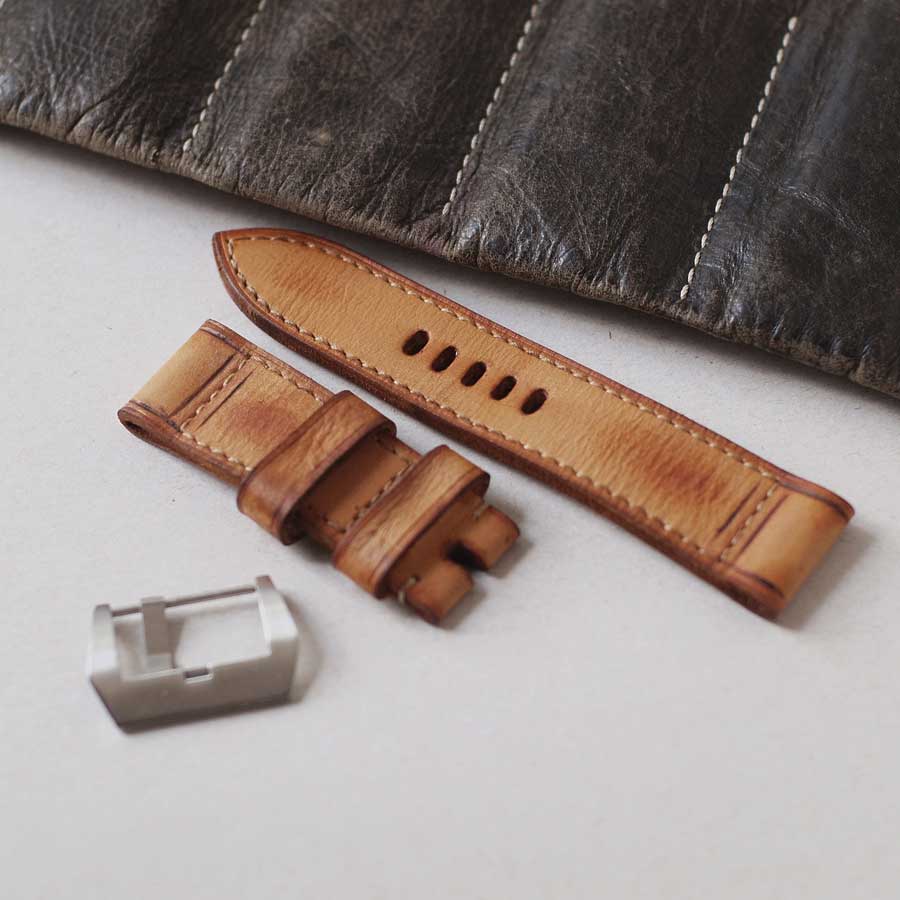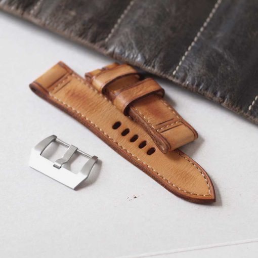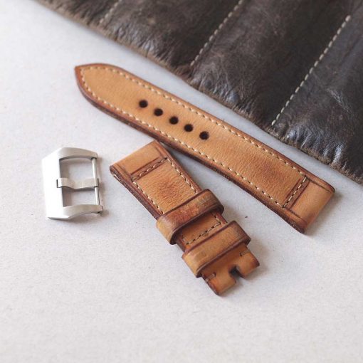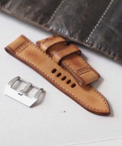 Premium handmade Panerai strap in saddle tan Vegtan leather. Warm tones, traditional stitching, and timeless character – handcrafted by CLQSTRAP.