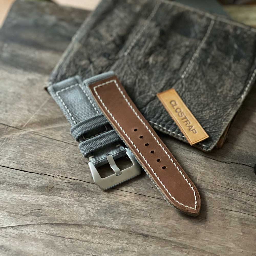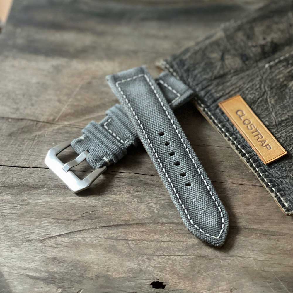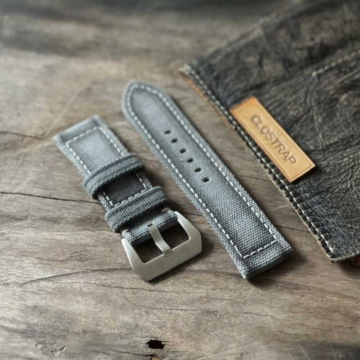 Rolled-edge Canvas Watch Strap – Grey | CLQSTRAP